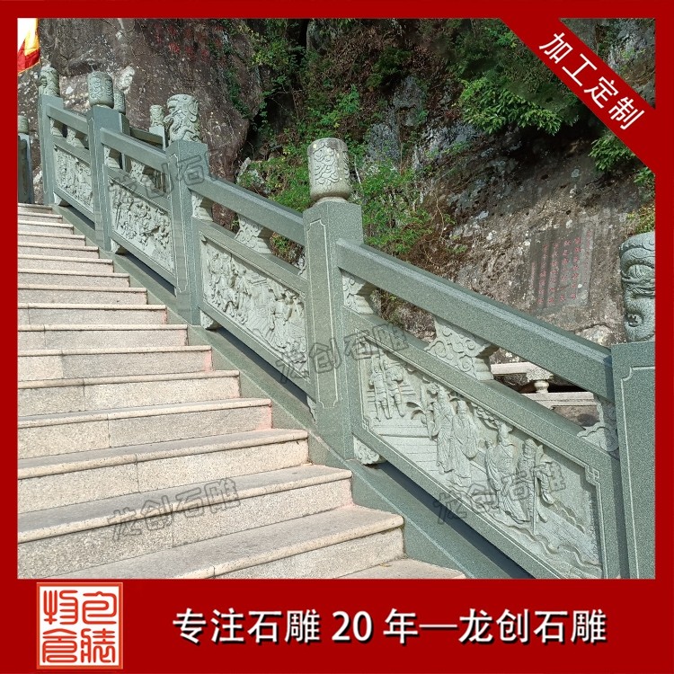 打磨與雕刻,是賦予石雕欄桿靈魂的關鍵環節。匠人先用粗磨工具去除石材表面的粗糙痕跡,再用細磨工具反復打磨,讓欄桿表面平滑細膩,觸感溫潤。雕刻環節更是考驗匠人的功力,手工雕刻與數控雕刻相輔相成,淺雕、深雕、鏤空雕等多種技法靈活運用,祥云的飄逸、花鳥的靈動、人物的神態,都在匠人的刀下被展現得淋漓盡致。每一刀都精準有力,每一處細節都精益求精,既保留了石材的天然質感,又賦予了其人文溫度。最后,通過專業的拋光與防護處理,讓石雕欄桿的光澤更持久,防水防污、抗腐蝕能力更強,得以歷經歲月打磨而依舊熠熠生輝。