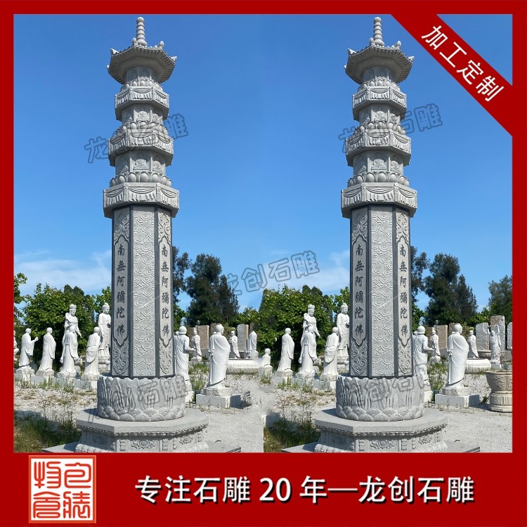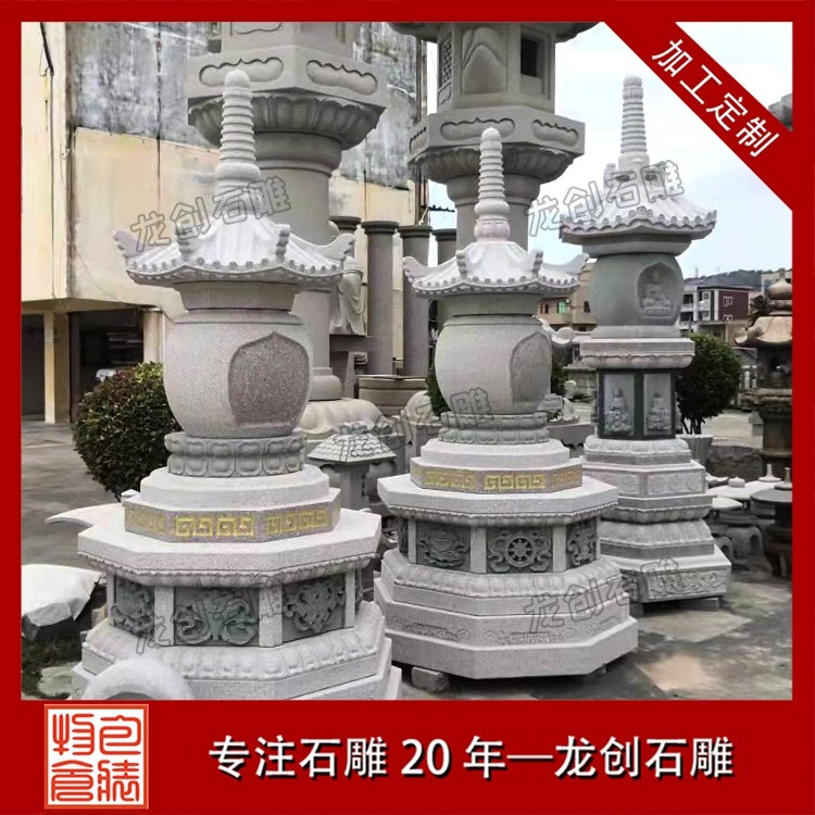 專為寺廟場景打造的雕刻石塔,更注重宗教內涵與藝術表現:經幢塔:刻有經文咒語,供信眾繞行祈福;舍利塔:供奉高僧舍利,造型精致莊重;鎮寺塔:立于寺院中軸線,成為視覺與精神的中心。