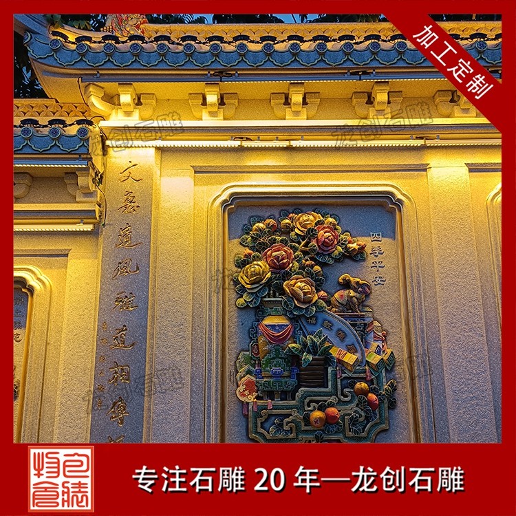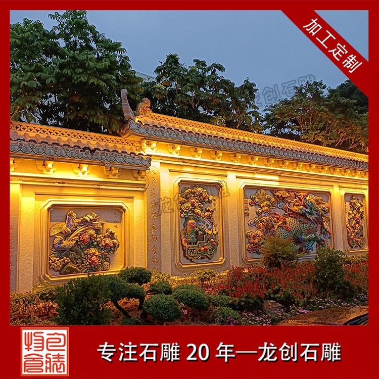 其二,意境含蓄內(nèi)斂,彰顯中式人文情懷。中式庭院講究“藏而不露”,石雕照壁浮雕恰好契合這一美學(xué)理念,既巧妙遮擋院內(nèi)景致,避免“開門見山”的直白,又以浮雕紋樣傳遞美好期許——龍鳳呈祥彰顯尊貴,松鶴延年寄托福壽,鹿竹同春寓意平安,山水花鳥展現(xiàn)自然之美,讓冰冷的石材承載起溫暖的文化內(nèi)涵與家族期盼。